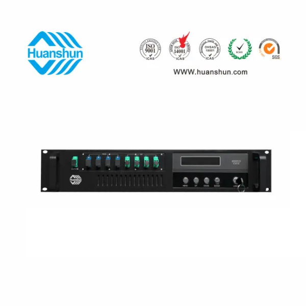 隨著廣電全光網(wǎng)傳輸光纖到戶方案(FTTH)的實施,當EDFA在CATV系統(tǒng)中用作級聯(lián)放大時,系統(tǒng)C/N會嚴重劣化,因此要求EDFA具有高的飽和輸出功率、低的失真,而鉺鐿共摻(EYDFA)雙包層大功率光纖放大器滿足這一需求,以適應當前FTTH和FTTB網(wǎng)絡的需求。FTTH除傳輸1550nm CATV光信號的同時,還需E/GPON DATA光信號傳輸,合波型大功率光纖放大器是在EYDFA的基礎上結合FWDM器件,有機地把1550波段CATV光信號與1310/1490nm PON DATA光信號進行合波傳輸。
