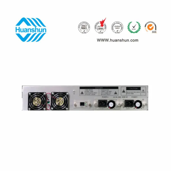 大功率光纖放大器 | YGF1516-16 | 19 " 2U/3U標準機箱,-5 ~ +10 d Bm輸入,16路標稱規格(16、17、18、19、20、21、22、23、24dBm)放大輸出,并支持下調-2dB,安全連接模式,NF ≤ 5dB(0dBm時);內置FWDM合波器,插播損耗 ≤ 1dB;雙模塊熱插撥電源,AC90 ~ 255V或DC-48V供電,RJ45標準網管(支持SNMP、WEB) |