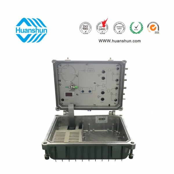 YGS86/10050R野外型四輸出光接收機(jī)是適應(yīng)NGB網(wǎng)絡(luò)構(gòu)架EPON+EOC而設(shè)計(jì)的低光功率光接收產(chǎn)品。本機(jī)選用光電一體化模塊或高靈敏度光電管,低噪聲前置砷化鎵放大芯片,末級(jí)采用英國(guó)OEI砷化鎵功率倍增放大模塊,最大輸出電平可達(dá)4×104/4×108dBuV(YGS10040R);本機(jī)還配置高精度避雷保護(hù)開(kāi)關(guān)電源,光控AGC自動(dòng)輸出電平控制,光接收功率LED數(shù)碼顯示,EOC插入器(數(shù)據(jù)通道5~65MHz)。由于主要器材性能優(yōu)越,加上精心設(shè)計(jì)的電路配合,從而保證了性能指標(biāo)高,可靠性好。同時(shí),為解決運(yùn)營(yíng)商設(shè)備管理和雙向網(wǎng)改造之便,本機(jī)增加了可選型網(wǎng)管應(yīng)答器有EOC雙工器,通過(guò)以太網(wǎng)絡(luò)可實(shí)現(xiàn)HFC網(wǎng)管系統(tǒng)監(jiān)控和EOC插入功能。